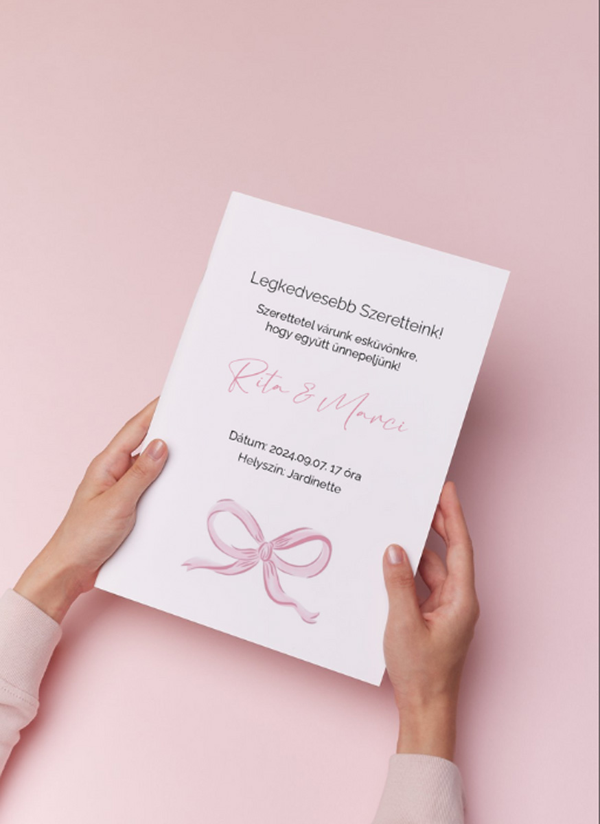 Ha velem, profi grafikussal dolgoztok, biztosak lehettek abban, hogy az esküvői meghívók és minden más grafikai elem tökéletesen illeszkedik az elképzeléseitekhez, és a nyomdai kivitelezés hibátlan lesz. Ezzel időt és stresszt takaríthattok meg, miközben garantáljuk, hogy az esküvőtök minden grafikai részlete a legmagasabb minőségben készül el.